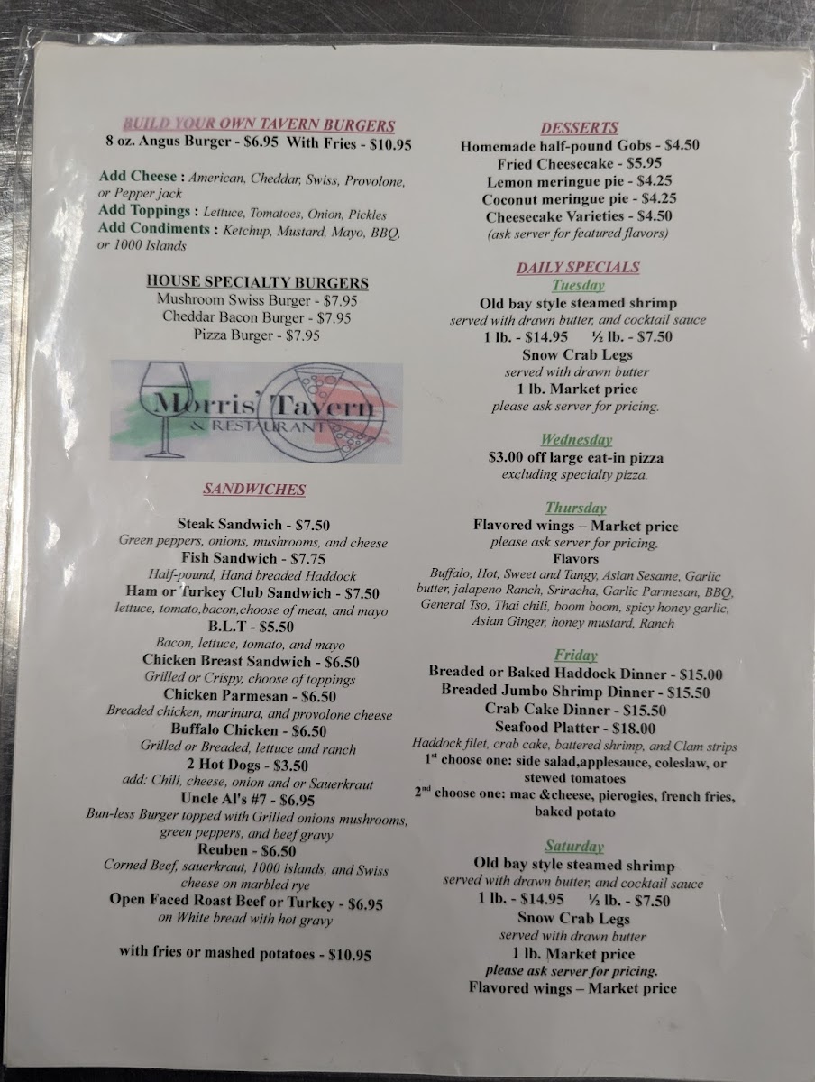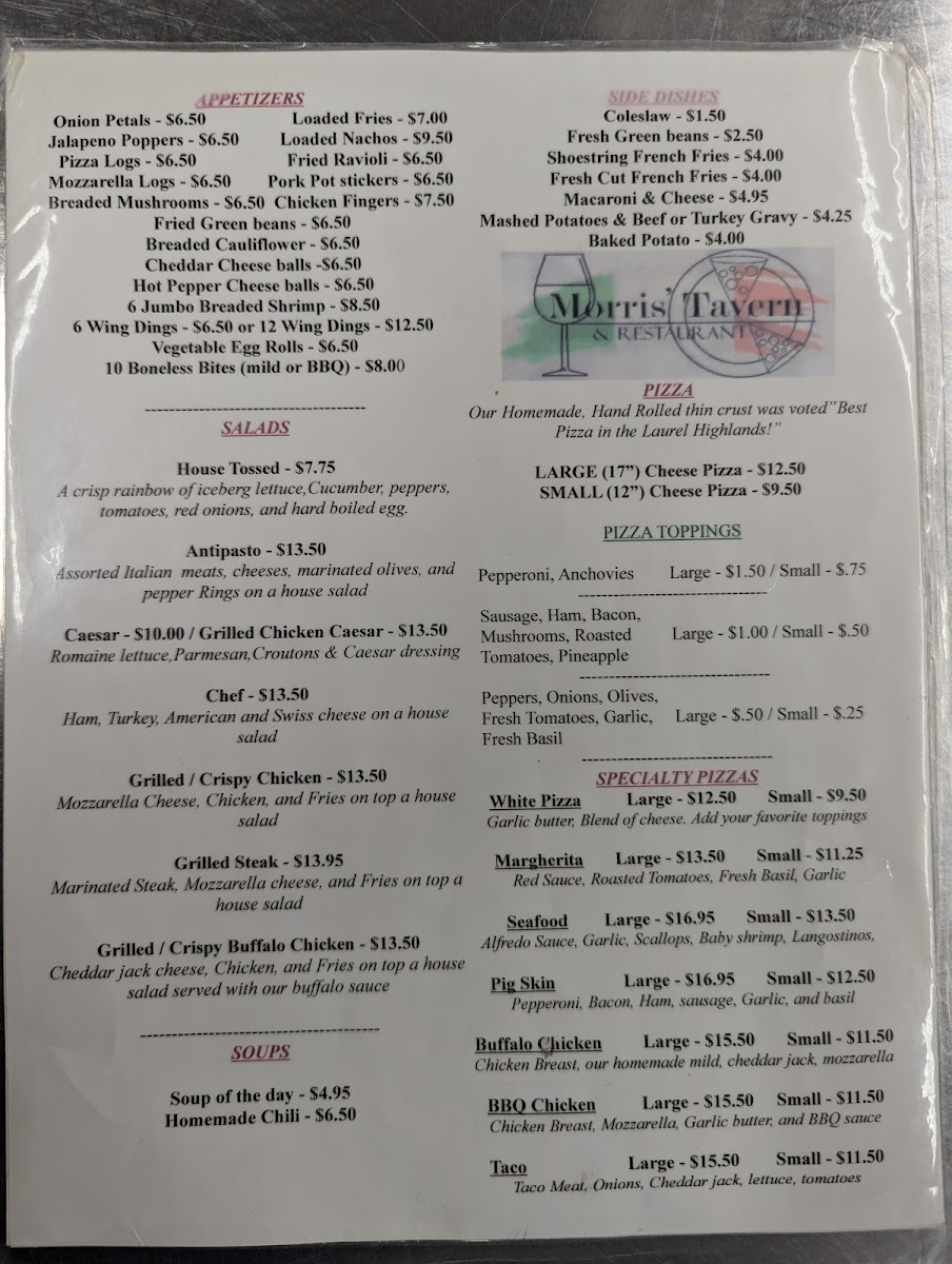 Morris' Tavern & Restaurant Menu